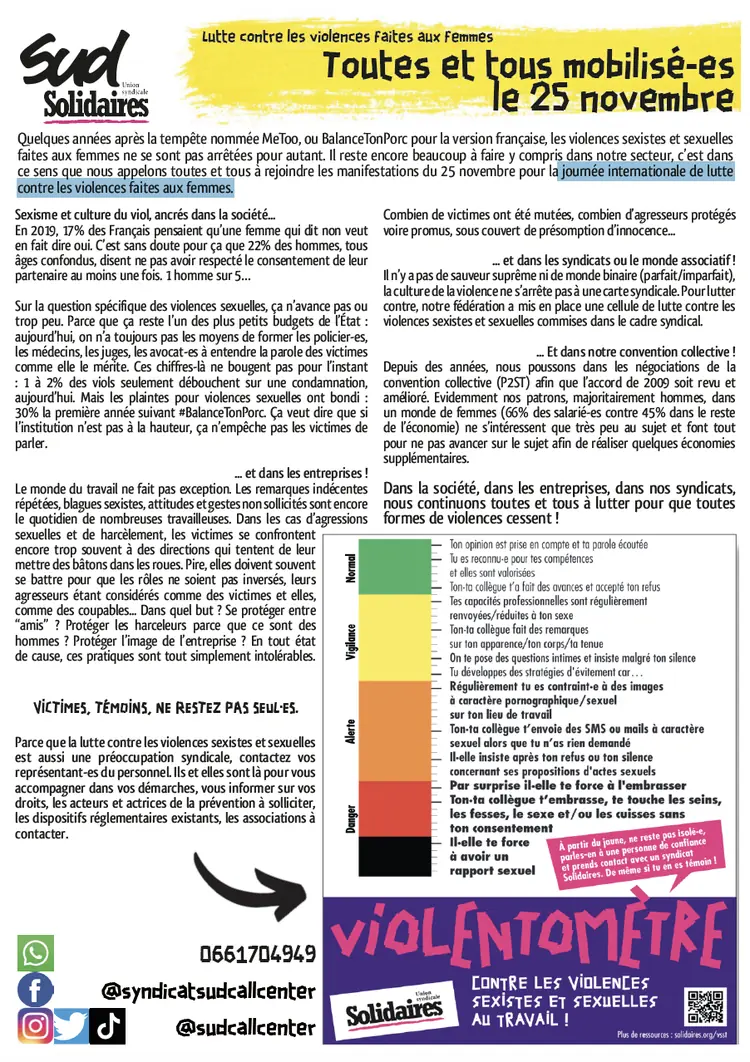 Tract d'appel à la journée internationale de lutte contre les violences faites aux femmes.
