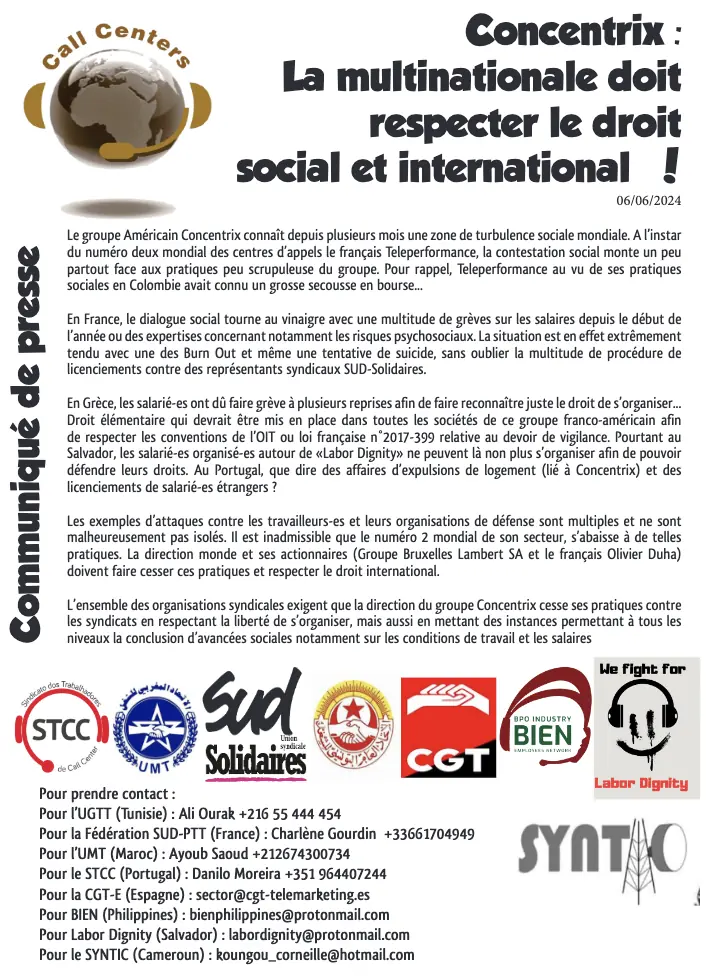 Concentrix : La multinationale doit respecter le droit social et international !